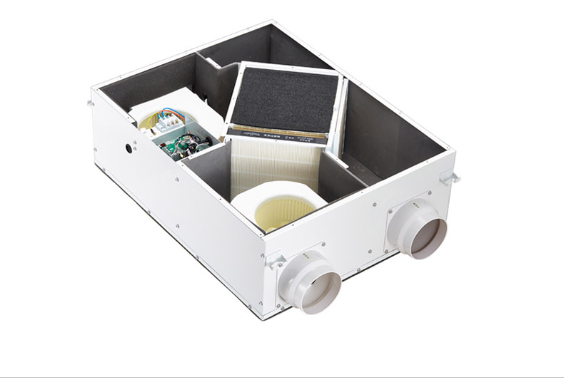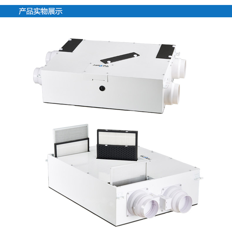 雙向流新風機:訂機采用雙核動力設計,動力強,體積小;采用直流無刷電機,低噪音,低能耗